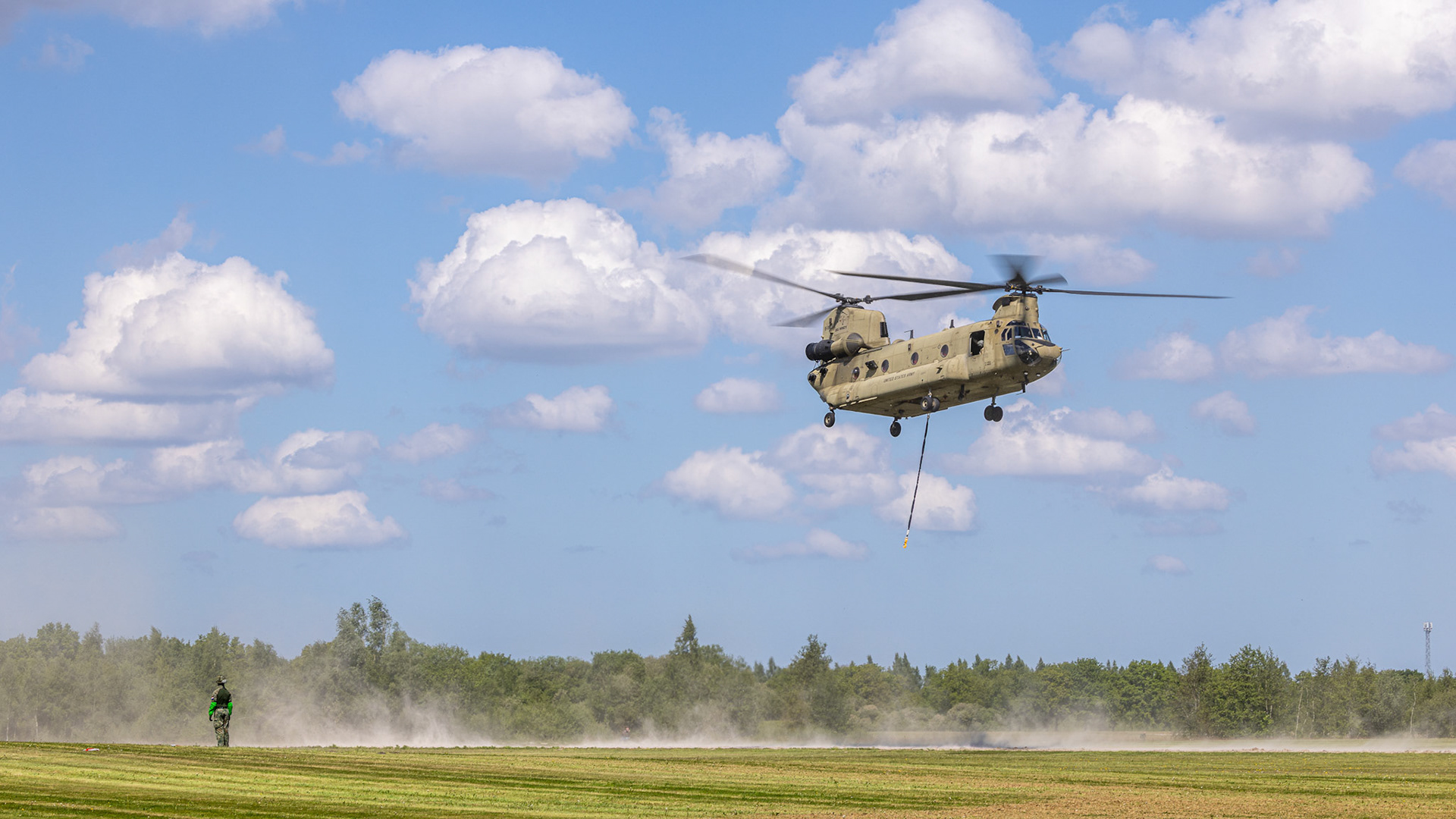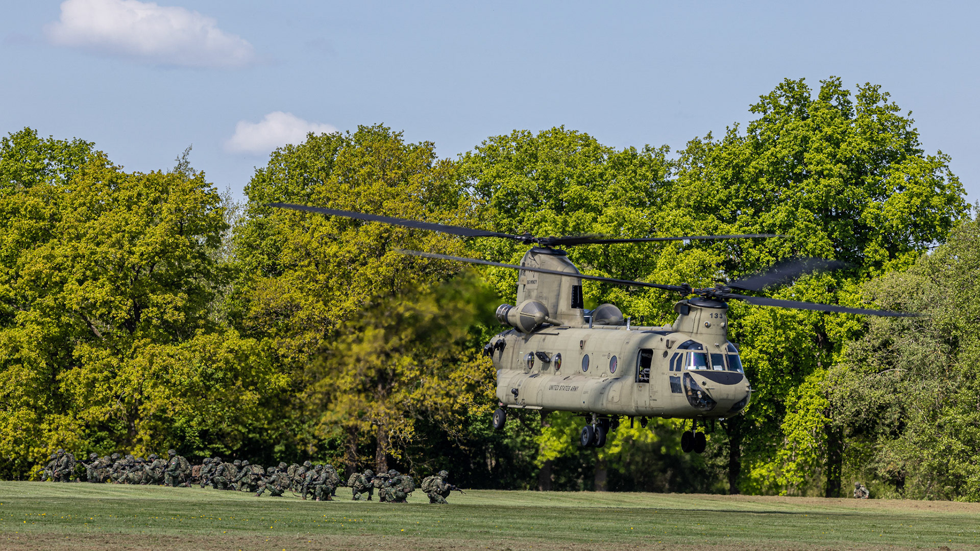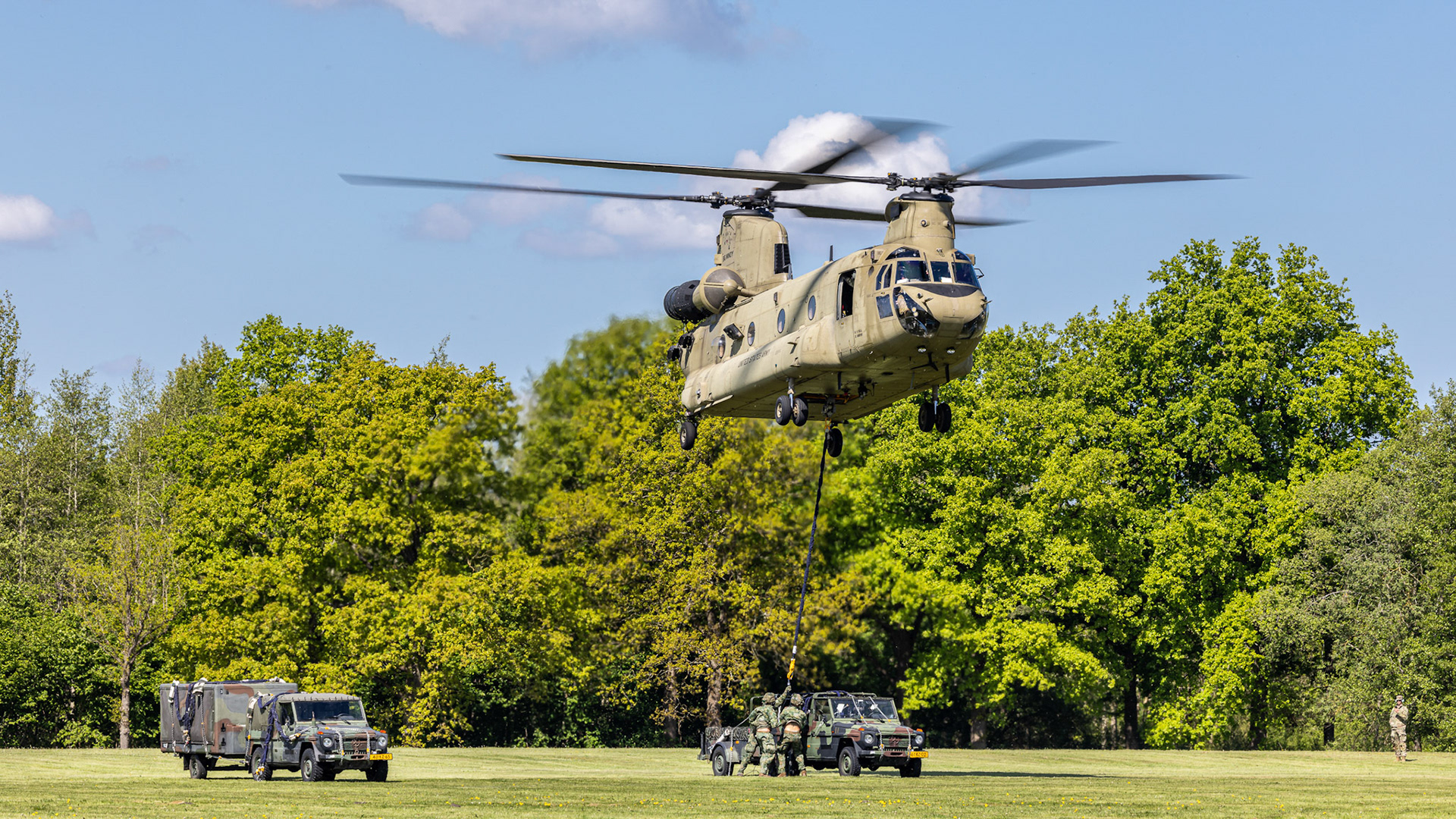Over two weeks, Dutch and American helicopters — CH-47 Chinooks, AS532 Cougars, AH-64 Apaches, and UH-60 Black Hawks — ferried troops, supplies, and vehicles between Drachten, Havelte, and Marnehuizen. Airborne infantry from the 13 Infanteriebataljon (11 AMB) executed rapid insertions into mock combat zones, supported by DHC Apaches flying low through mist and rain.